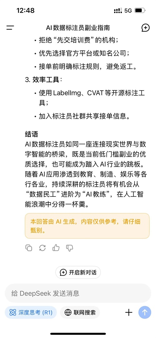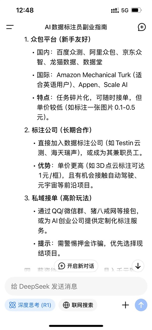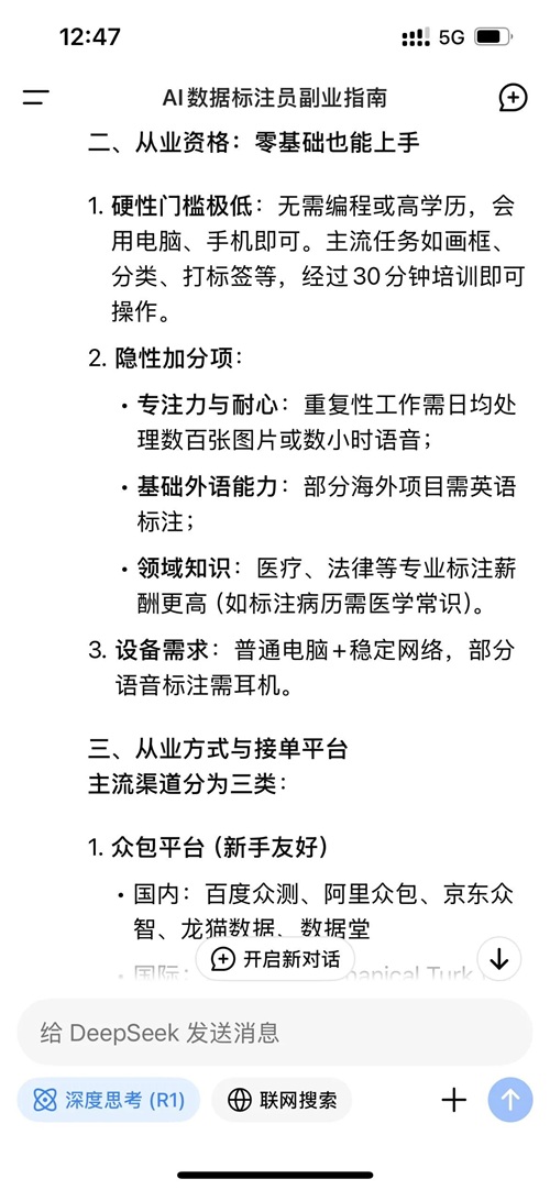 Deepseek给你找副业零门槛AI数据标注员时薪可达20~50元你爱了吗