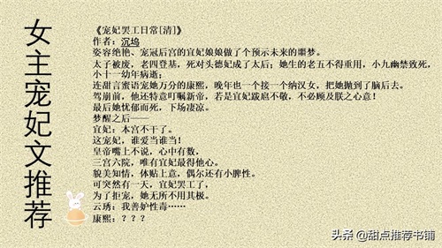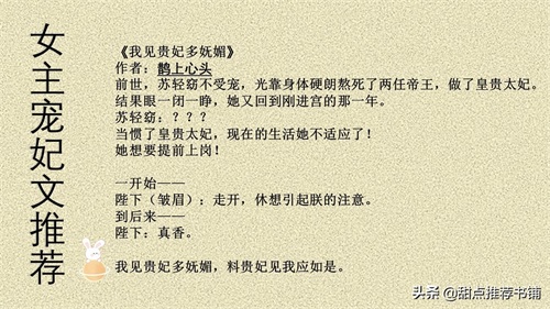 哈喽,大家晚上好呀,今天推荐八本女主是宠妃的小甜文,看女主在后宫斗智斗勇,大杀四方~
