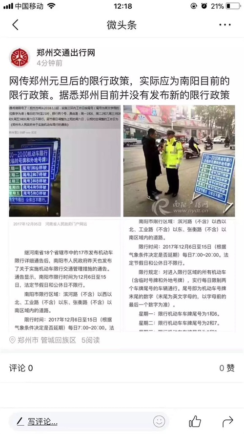疯传!2018年郑州将限号?真相竟然是……