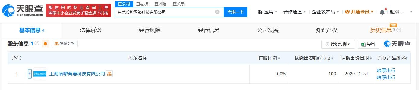 哈啰出行在东莞成立网络科技公司
