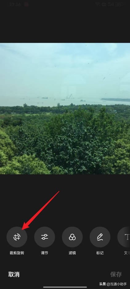 2、进入到编辑页面,点击“裁剪旋转”。