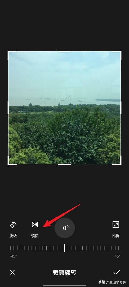 3、进入到裁剪旋转页面,点击“镜像”。