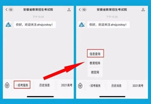 第二步:点击左下方“招考服务”按钮会出现“信息查询”子菜单,点击“信息查询”,访问手机查询页面,输入考生身份证号、姓名、考生号及验证码就可以查询高考成绩。