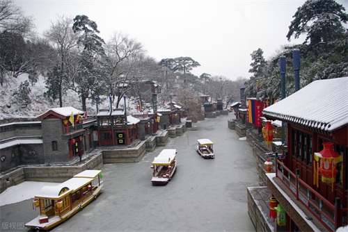 乾隆皇帝第一次下江南时,因留恋江南苏州热闹的街肆铺面,便命随行画师绘图记录。回京后,命人在北京城西北郊的今颐和园北宫门内的位置。沿万寿山后河两岸,仿建了一条江南水乡风貌的街市。