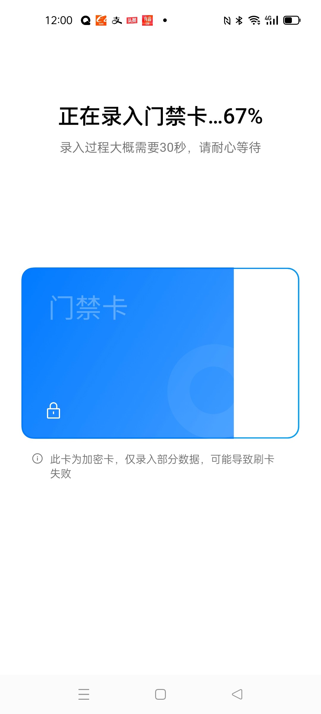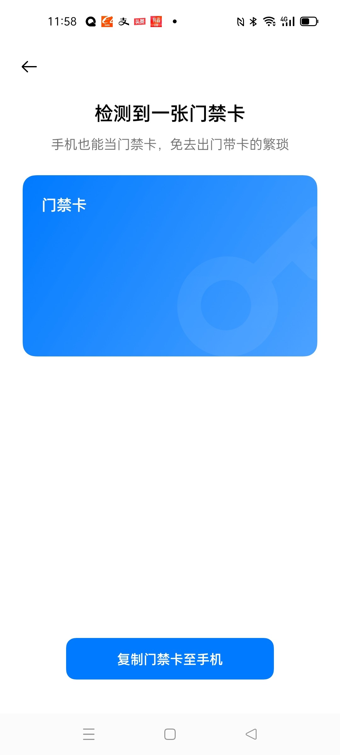 好了,现在就可以把出入小区的时候就可以把手机背面对着门禁刷一下就可以开门了。如果有兴趣的话大家可以试试用这个方法把公交卡也录入进去坐公交车也就方便了。