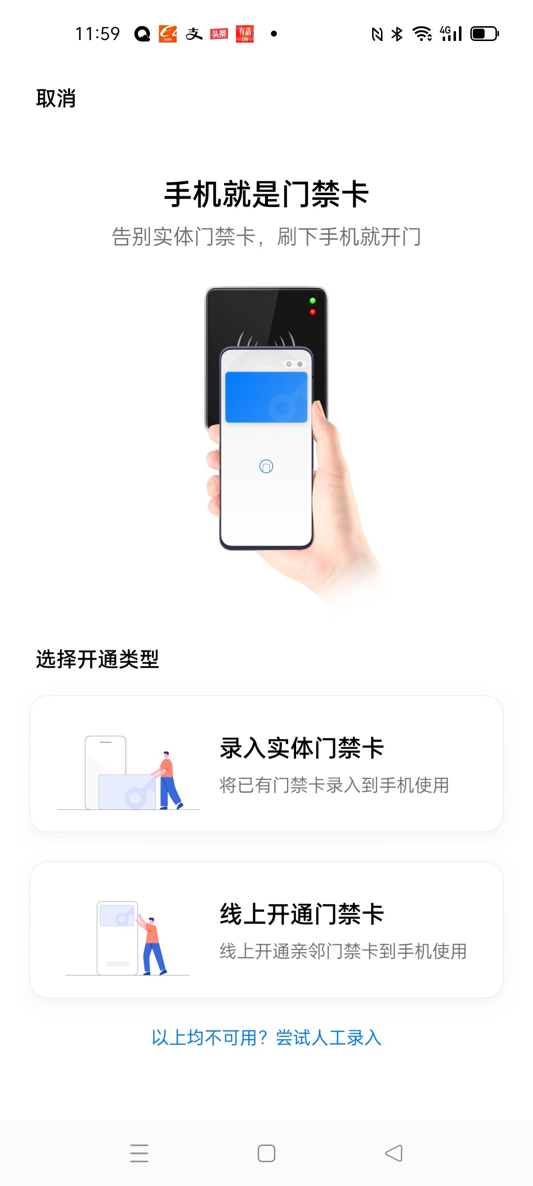 现在开卡成功了。出入小区需要刷卡的时候,拿手机背面刷一下就可以了。