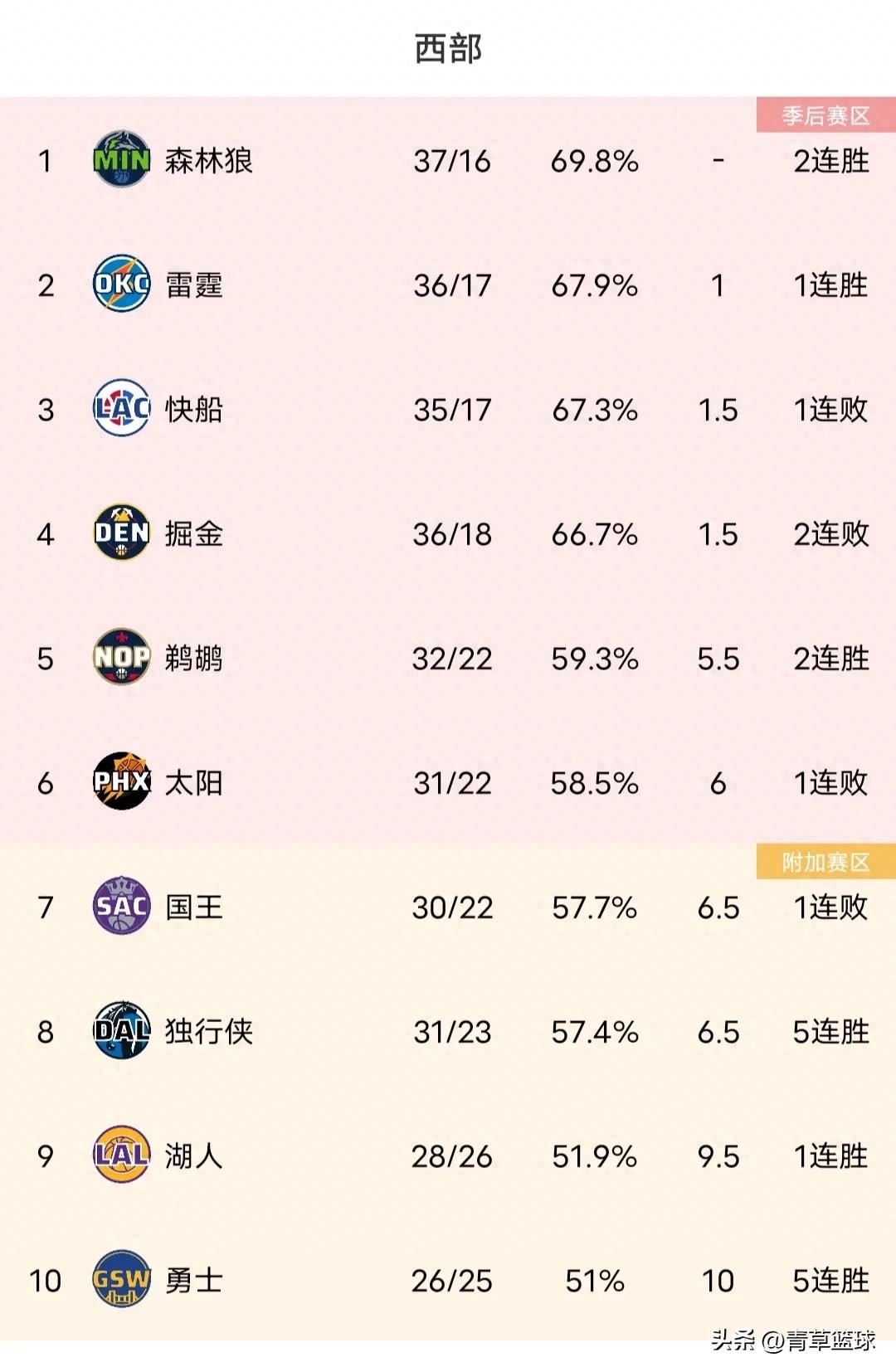 NBA战火纷飞,西部竞争尤其激烈,小编给大家盘点一下西部最新排名。