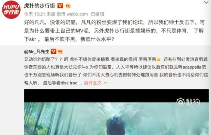 据说有人在虎扑发了一段吴亦凡无修音现场版视频,质疑吴亦凡的实力。这一幕被吴亦凡的粉丝看到,居然敢diss、我家爱豆?随后吴亦凡粉丝出动去虎扑“反黑”,并且吴亦凡亲自发博回怼虎扑,于是,虎扑官方和吴亦凡开始了“嘴炮”战争。