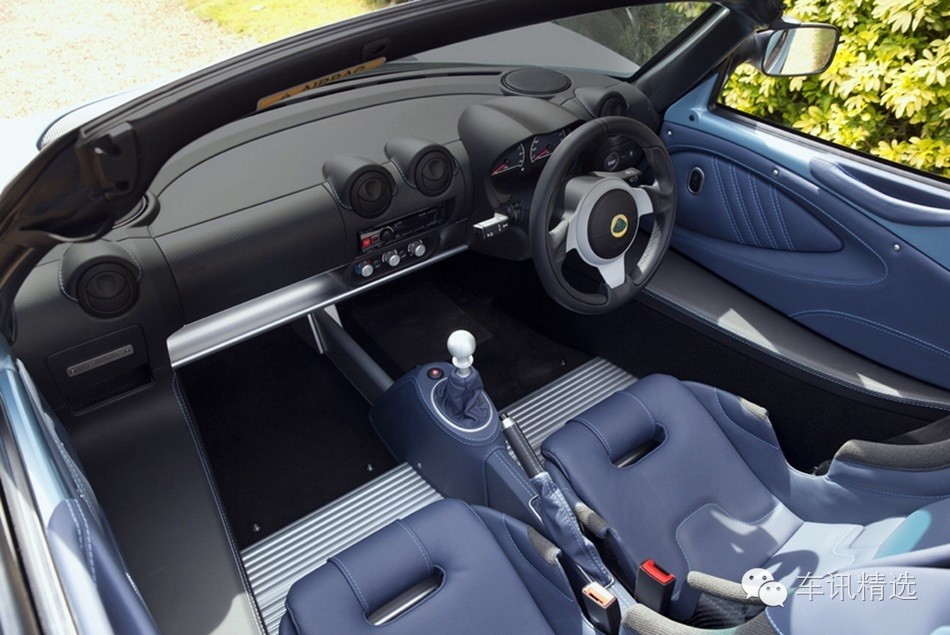 限量50部的Elise 250特别版,外观、内饰加入许多碳纤维元素,像是前下扰流板、尾翼、桶型座椅等,全车只有899公斤。