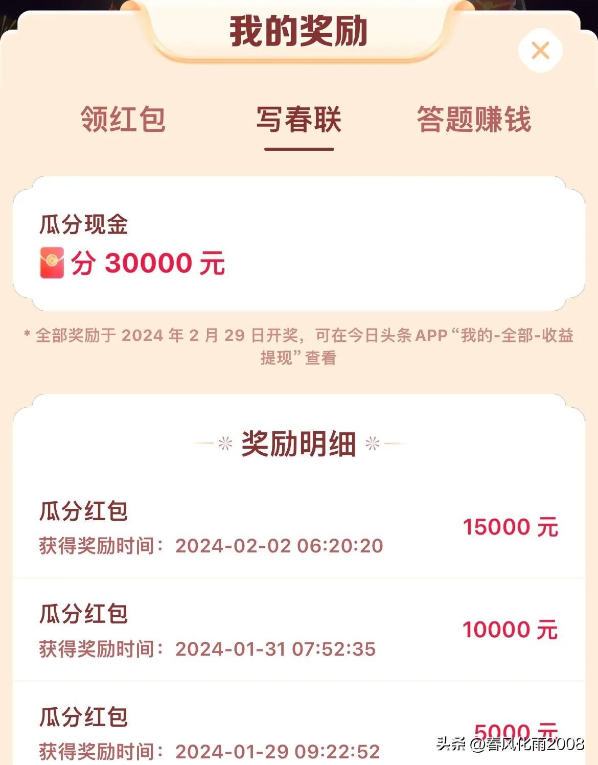 友友们,你们可瓜分的奖金是多少?来头条晒一晒。