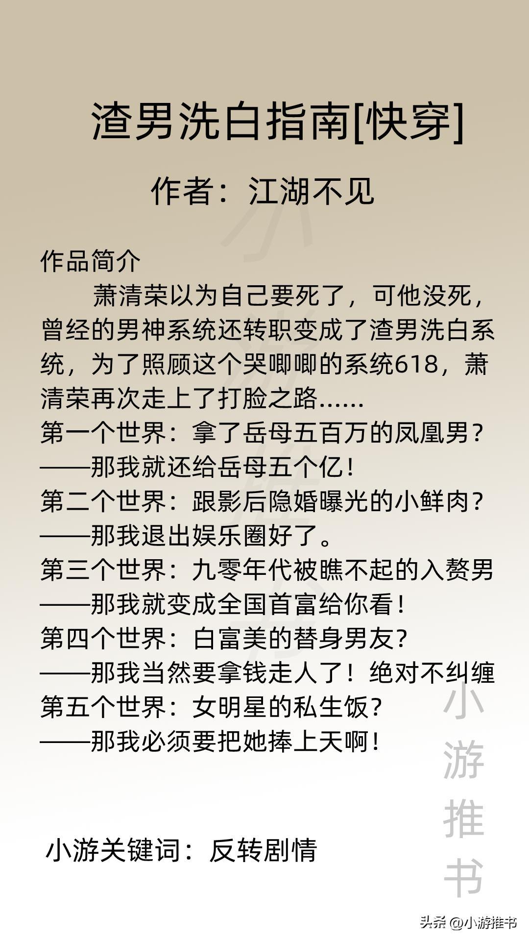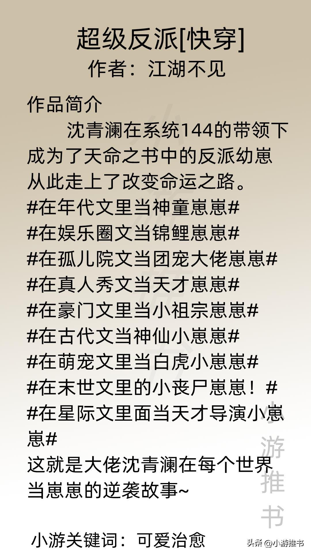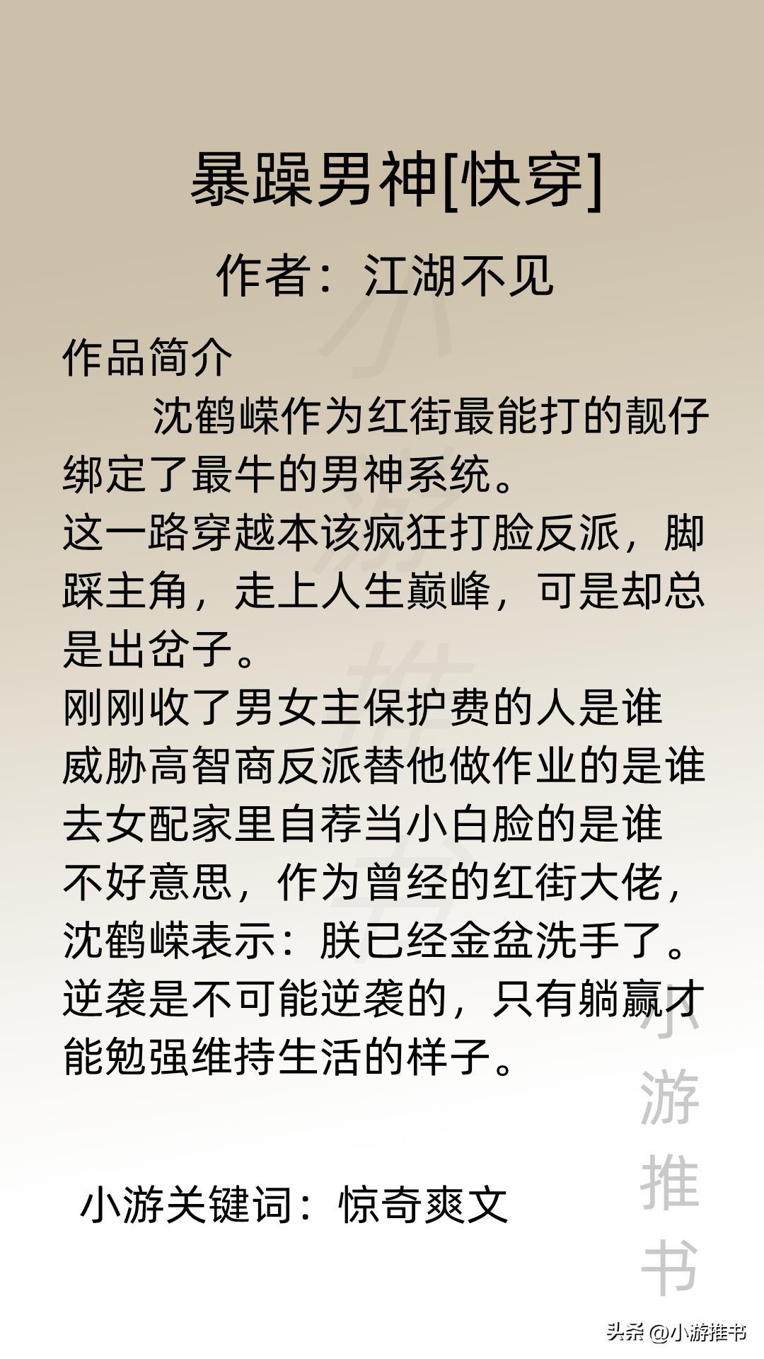 大家好,我是@小游推书,今日份是男主向的快穿文,江湖不见大大在网文里是比较高产的作者,小说质量好,今日推荐的这九本看完很过瘾,主角的各种神操作,剧情精彩,量大管饱!#小说推荐##快穿#