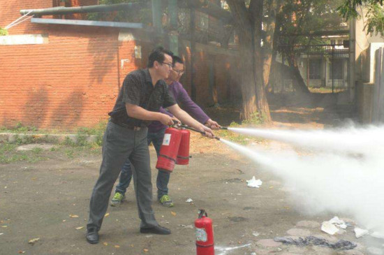 使用干粉灭火器时,需要站在火源前5米顺风处拔下保险销,双手分别握住喷嘴和压把,对准火源左右扫射,火灭后松开压把即可,而二氧化碳的使用方法与之类似。但在使用二氧化碳灭火器时,需要注意不要直接用手握住喷嘴。
