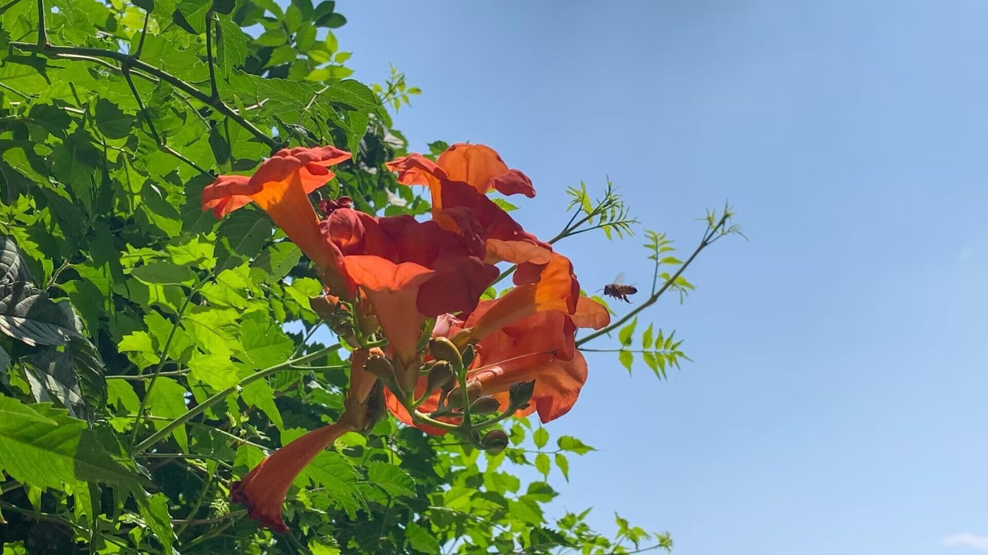 立夏之后,济南大街小巷中时常可见一朵朵艳丽开放的凌霄花,迎风摇曳在灿烂阳光下,给人以不期而遇的惊艳之感。(大众日报客户端记者 武宗义 报道)