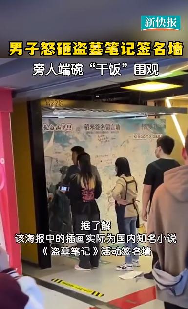 据了解,海报中的插画实际出自国内知名小说《盗墓笔记》,该男子误以为是日本动漫,随即对签名墙进行破坏。