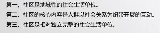 贝尔和纽柏总结为对各种“社区”的定义进行了分类,认为应该包括三个方面:
