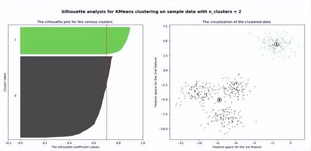 n_clusters = 2时,第0簇的宽度远宽于第1簇;