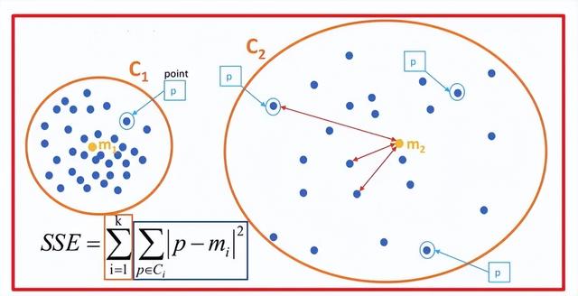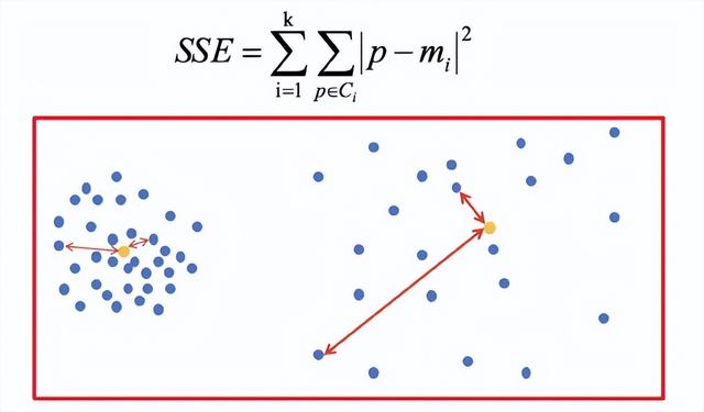 SSE图最终的结果,对图松散度的衡量.(eg:SSE(左图)<SSE(右图))SSE随着聚类迭代,其值会越来越小,直到最后趋于稳定: