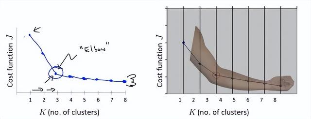 在决定什么时候停止训练时,肘形判据同样有效,数据通常有更多的噪音,在增加分类无法带来更多回报时,我们停止增加类别。