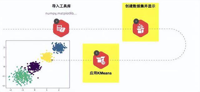 K : 初始中心点个数(计划聚类数)means:求中心点到其他数据点距离的平均值3.1k-means聚类步骤1、随机设置K个特征空间内的点作为初始的聚类中心2、对于其他每个点计算到K个中心的距离,未知的点选择最近的一个聚类中心点作为标记类别3、接着对着标记的聚类中心之后,重新计算出每个聚类的新中心点(平均值)4、如果计算得出的新中心点与原中点行样(质心不再移动),那么结束,否则重新进行第二步过程