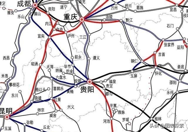 贵州省目前铁路运营总里程近3800公里(其中高铁1400公里)。已建成的铁路主要以贵阳为中心的放射线为主。