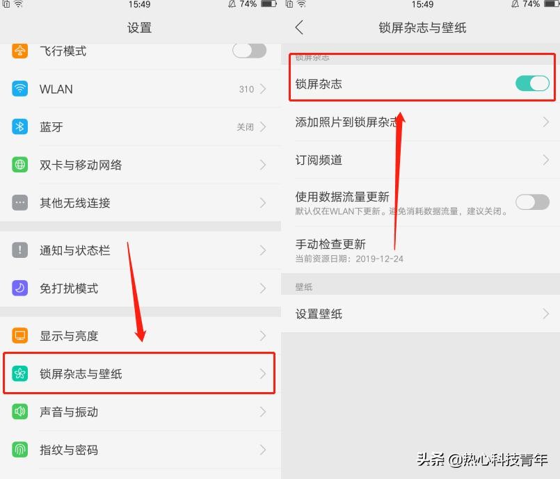 关闭方法:点击【设置】——【桌面与锁屏杂志】——【锁屏杂志】进行关闭即可。