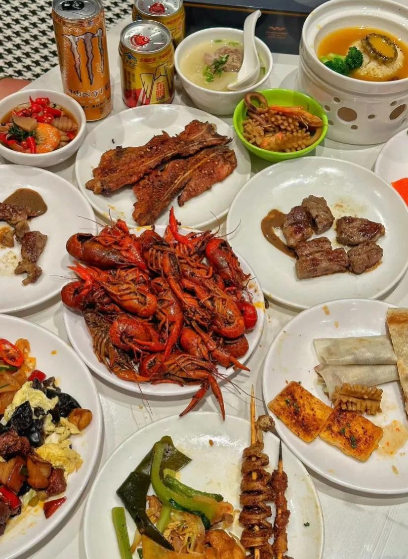 2️⃣免费提供早中晚夜宵餐食,餐食种类丰富,有海鲜(鲍鱼、生蚝、鱼生、虾类),还有羊排、雪花牛排、烤牛羊肉等高端食材