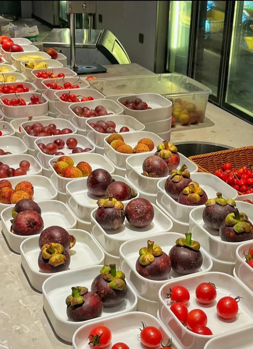 1️⃣水果品类丰富(有山竹荔枝榴莲时令水果)和酒水品类齐全