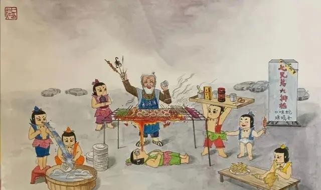 葫芦娃一家人凑到一起再也不是除妖英雄,而是小商小贩,还能各尽其能!