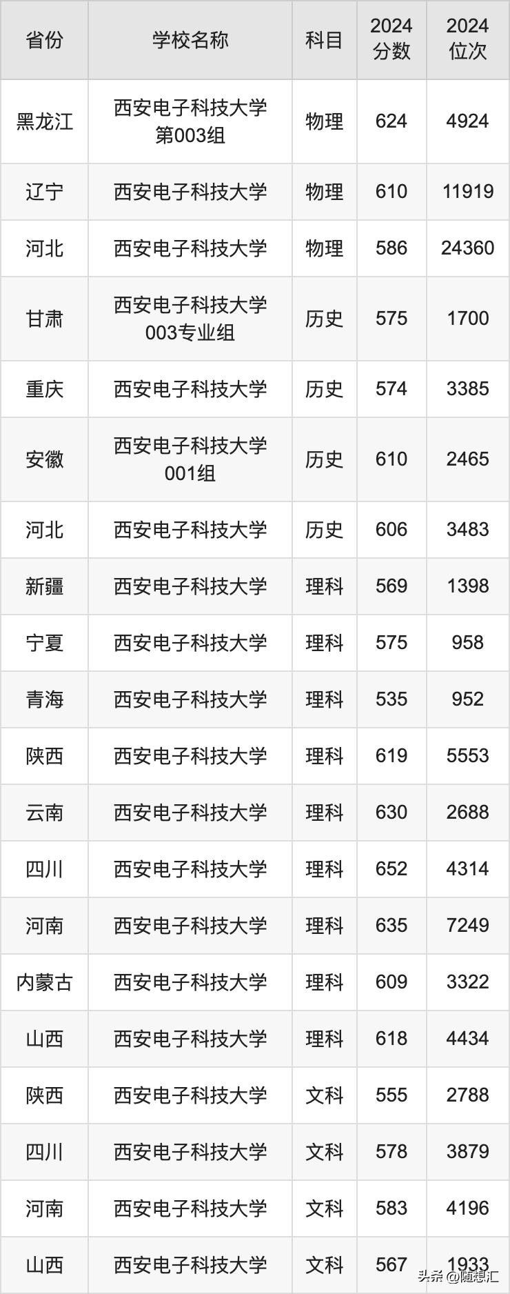2024西安电子科技大学录取分数线汇总:全国各省最低多少分能上