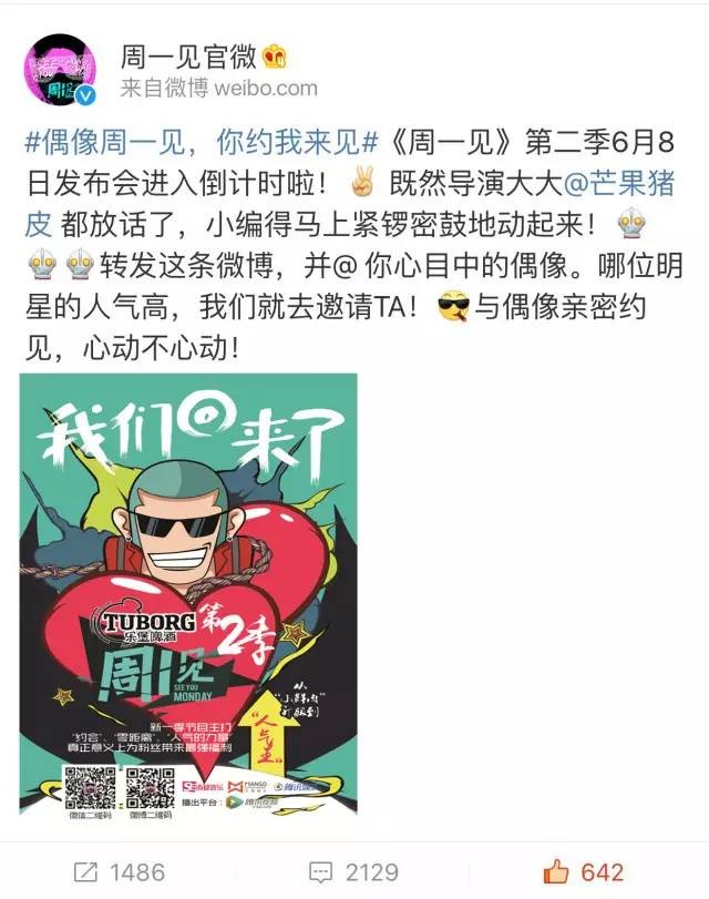大家也知道我们《周一见》,一贯是粉丝说见谁我们就约谁,粉丝们想怎么玩就怎么玩。