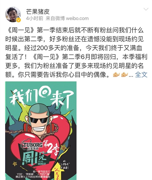 星星盼月亮,这一天也终于来了不是~《周一见》第二季正式启动了,发布会定在6月8号,是不是已经看到偶像在向你招手啦?
