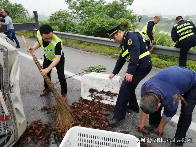 岳阳境内一天翻了两辆运虾车,1.5吨小龙虾“暴走” 高速