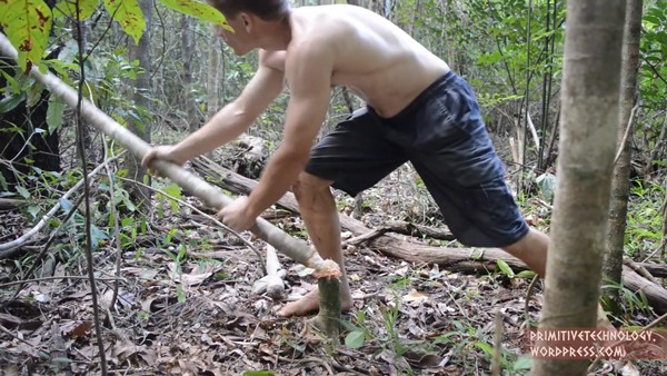 要制作一张弓,首先你要砍一棵不太粗的树作为你的制弓原料。