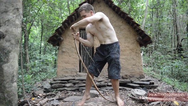 如图,把麻绳缠到弓的两端,你的弓现在就做好了。