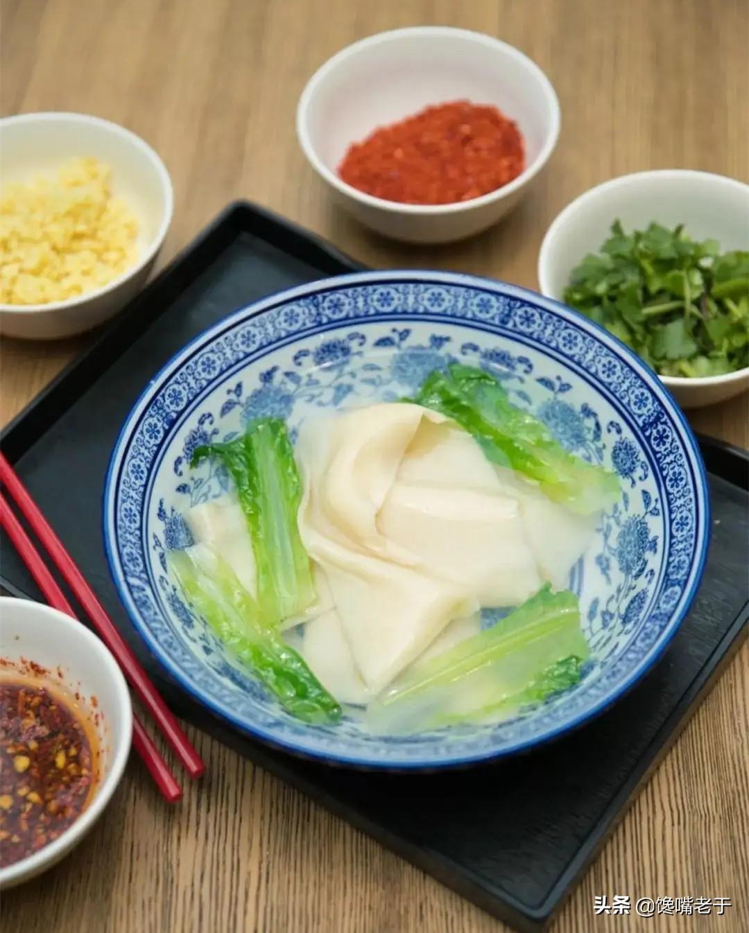 没尝过蒜蘸面的朋友,老于建议假如有机会去陕西,一定要尝一尝这道主食!蒜蘸面的面一般和腰带一样宽,看着那叫一个震撼,入口后那叫筋道爽口!