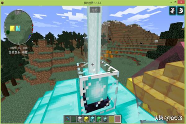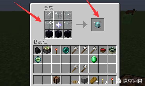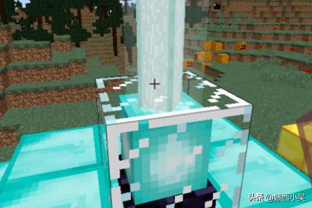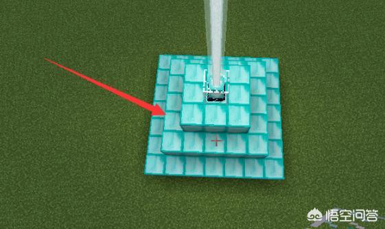 三、放置钻石块之后,在中心位置上放信标。正确放置信标之后,上方会出现一块光束。