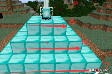 3、摆出3层的高度,第一层3*3,第二层5*5,第三层7*7,一共需要9+25+49=83个方块,这个基座需要的材料有点多,可以使用铁块,这种比较容易获得材料。