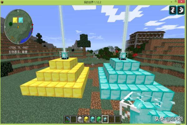 二、然后放置信标的条件是需要准备钻石块的,最少的单位是3*3的大小。