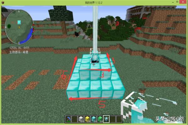 2、在3×3的基础上再加一层5×5的基座,信标还是放置在基座的最中心位置。