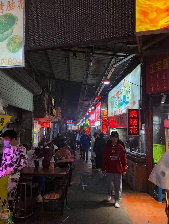 这里有牛杂、铁板、炸野、臭豆腐、还有非常出名的花奶奶螺蛳粉…