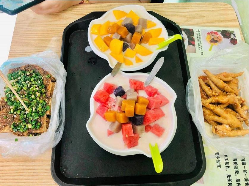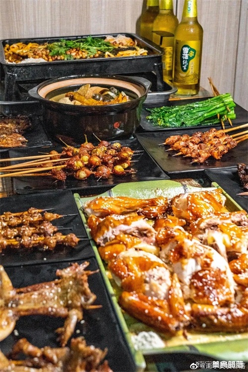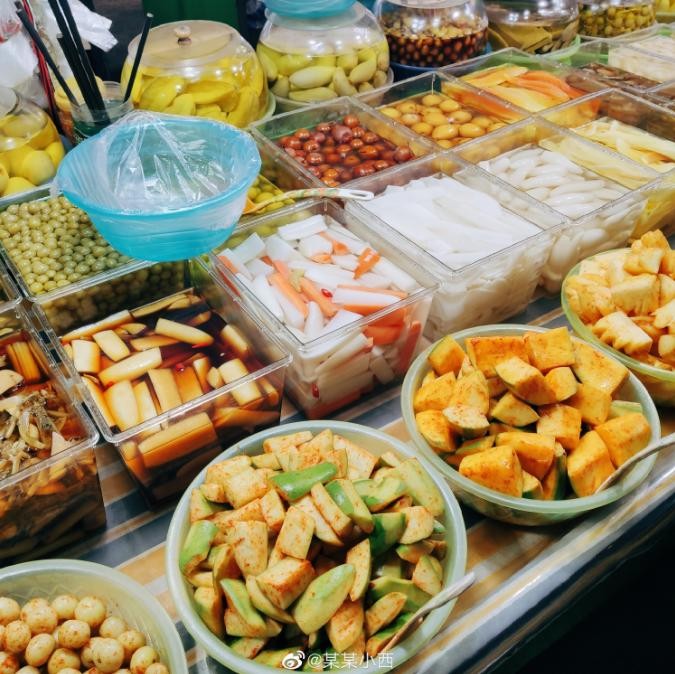 酸甜爽口的凉菜、花甲、排队超长的网红卷筒粉、牛杂、煎饼果子、烤猪蹄、烧烤、烤鱼、糖水店……