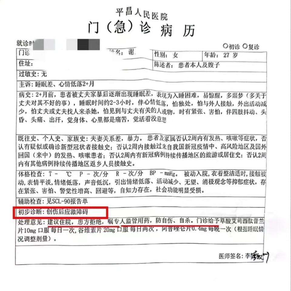 近日,“2年遭家暴16次女子被送精神病院治疗”引发关注。当事人谢女士的家属在社交平台表示,谢女士因创伤后应激障碍被强制入院治疗,这次住院没有办法带手机,故无法及时回应大家的关心。