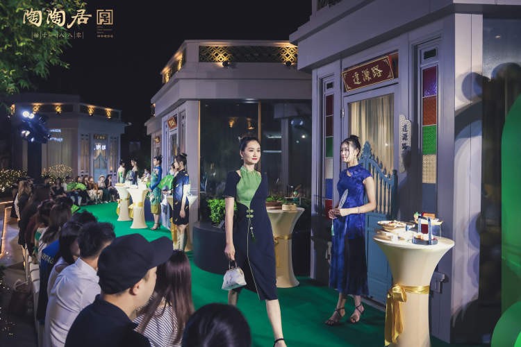 在独具中式庭院元素和岭南建筑元素的餐厅里,以橄榄绿、玫瑰金为主色调打造的户外花园变成了一个时尚秀场,百年美食陶陶居牵手老字号美妆品牌百雀羚,广州与上海双城的百年老字号联动,一场新中式美学的时尚大SHOW正在上演。