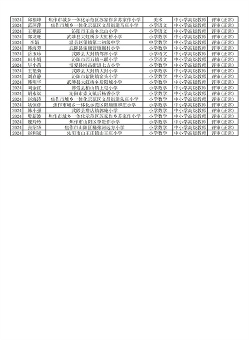 对于焦作市的家长和孩子们来说,这次职称评审的结果无疑是一个巨大的福音。这些新晋副高职称的教师们,不仅在教学上积累了丰富的经验,形成了独特的教学风格,还在学术研究上取得了显著的成果。他们的存在,如同孩子们成长道路上的灯塔,指引着他们向着知识的海洋勇敢前行。在他们的悉心教导下,孩子们不仅学到了书本上的知识,更学会了如何做人、如何面对生活的挑战。