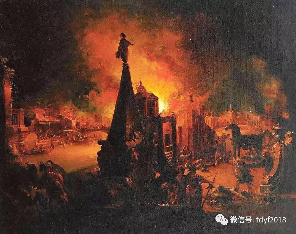 在一片熊熊大火之中,特洛伊城化为灰烬。