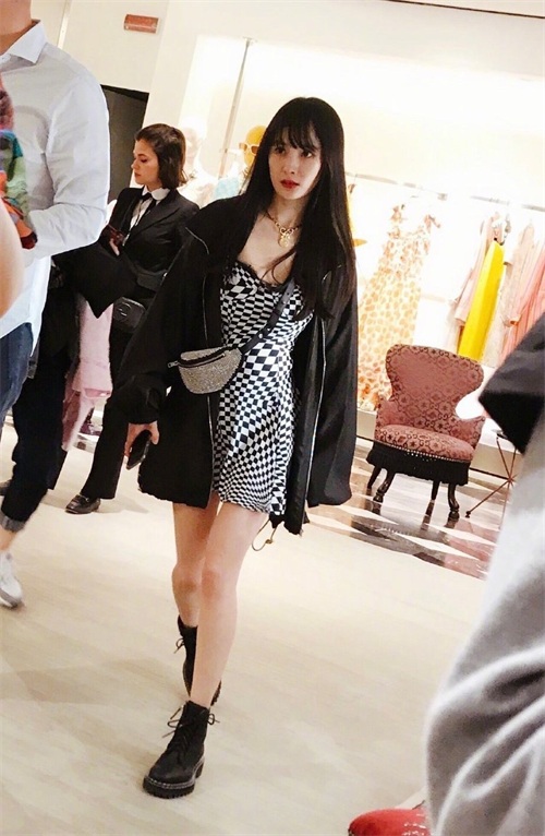 对于马丁靴,最最合适的搭配,小编觉得还是全身黑白的造型,比如下面这身不规则极具视觉冲击力的黑白格子裙,搭配一件oversized的大外套,酷拽又性感,这时候搭配一个银色系的腰包,穿上一双马丁靴,简直走路都带风的那种。