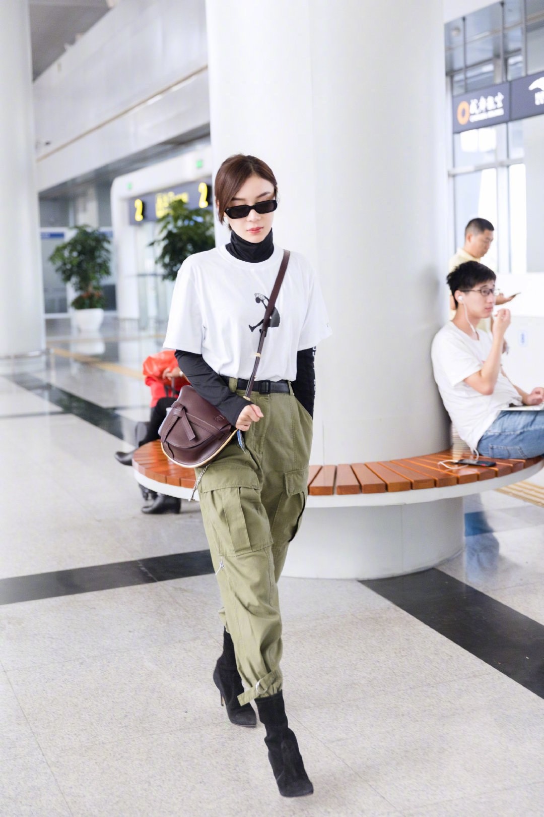 工装裤也是今年非常火爆的单品,大家都以为她只能搭配运动鞋,大错特错,工装裤搭配尖头短靴,效果出奇的好,简直就是飒美风,其实工装裤也可以搭配马丁靴,帅过男友系列。