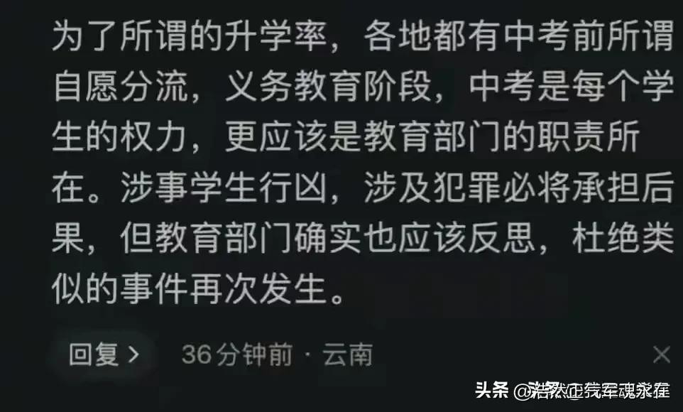 如果没有出现问题,分流也就分流了。可是,如果遇到了像这个杀害班主任老师的学生怎么办?还能一味地采取强制分流、不让参加中考吗?