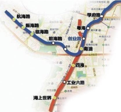 站点一览:航海路——振海路站——临海路站——前海路站——荔香站——南油站——粤海站——学府路站——深大东站——科技城站