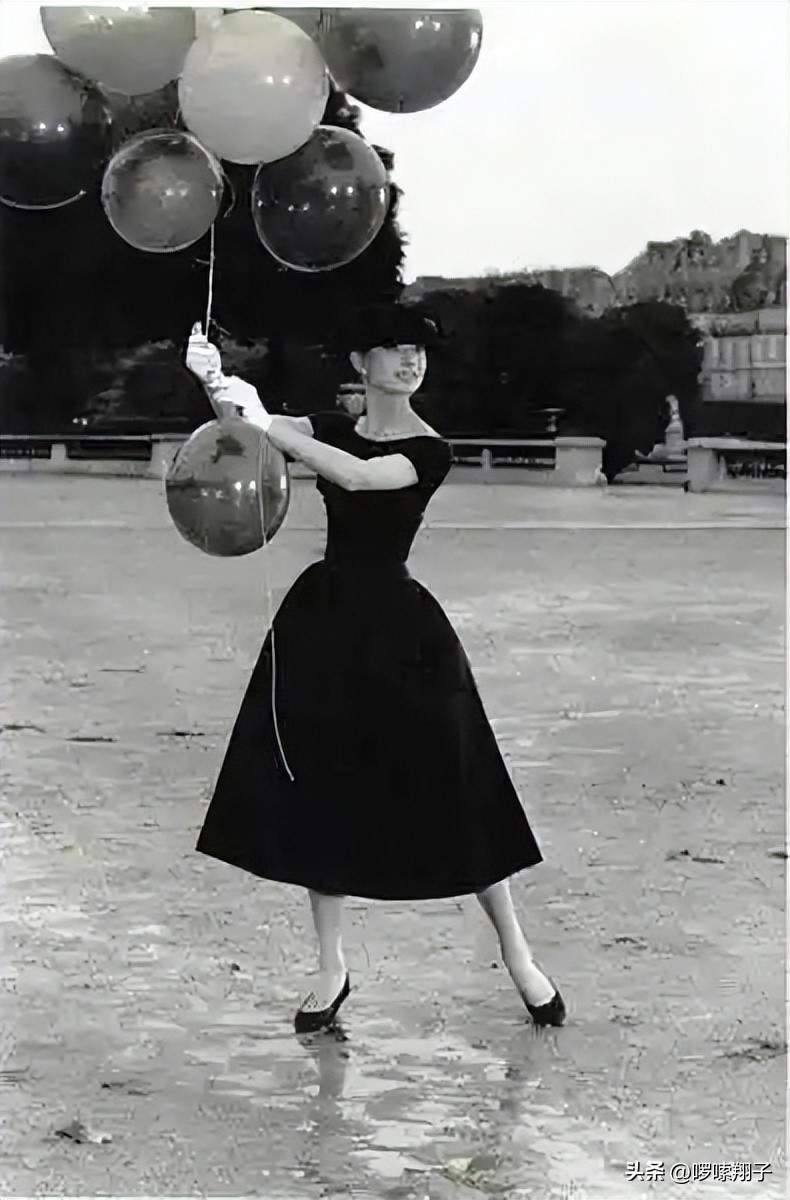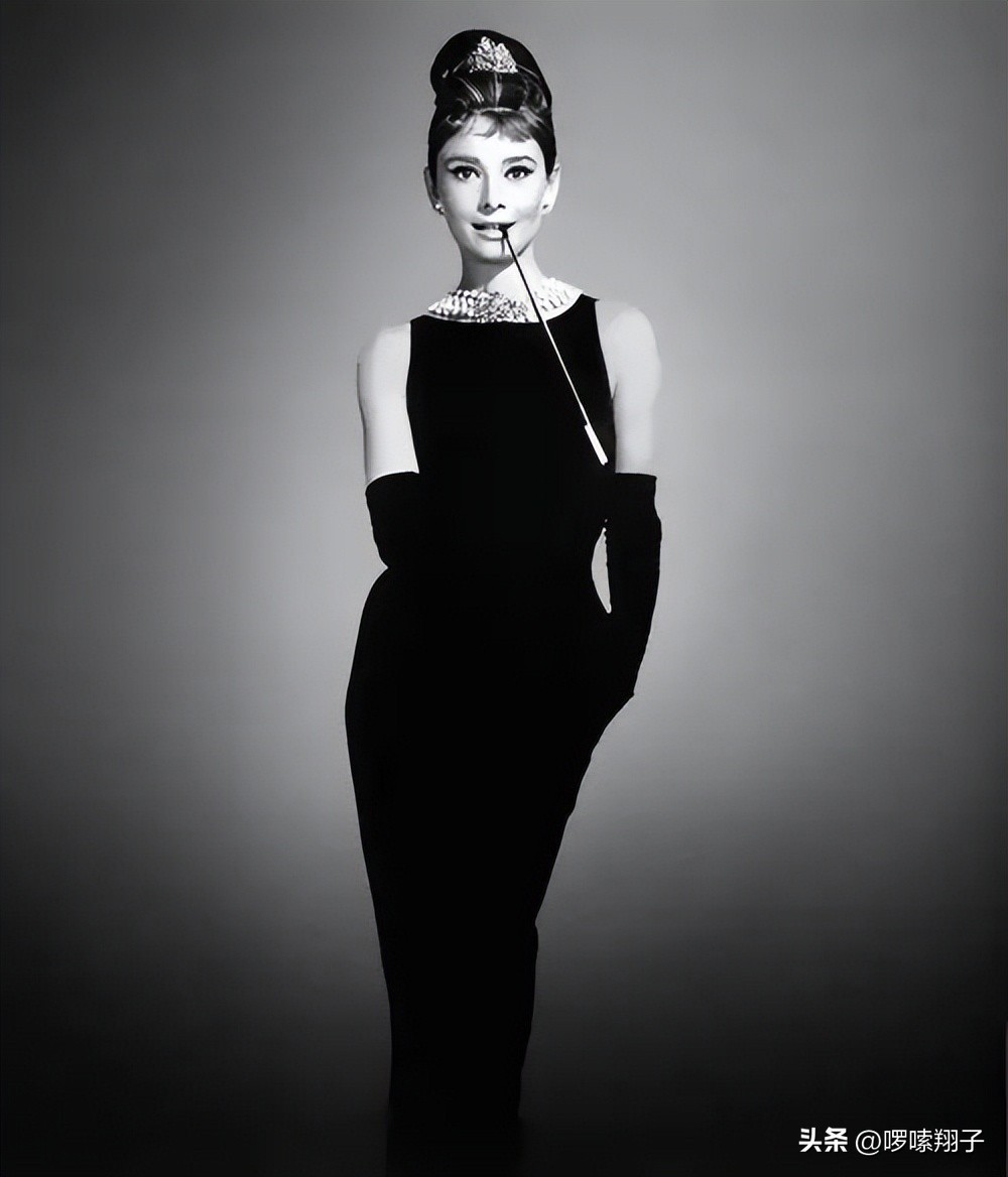 赫本喜欢穿黑色的裙子,她也喜爱打红色的雨伞,黑色和红色元素的交织让人们对赫本的出现有着深刻的印象。